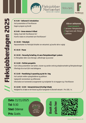 Vi afholdte vores første event i forbindelse med den årlige #Fleksjobberdagen. Hvor vi mødtes til et fysisk event i Odense, med deltagelse fra øst og vest. Du kan læse programmet for dagen til højre.